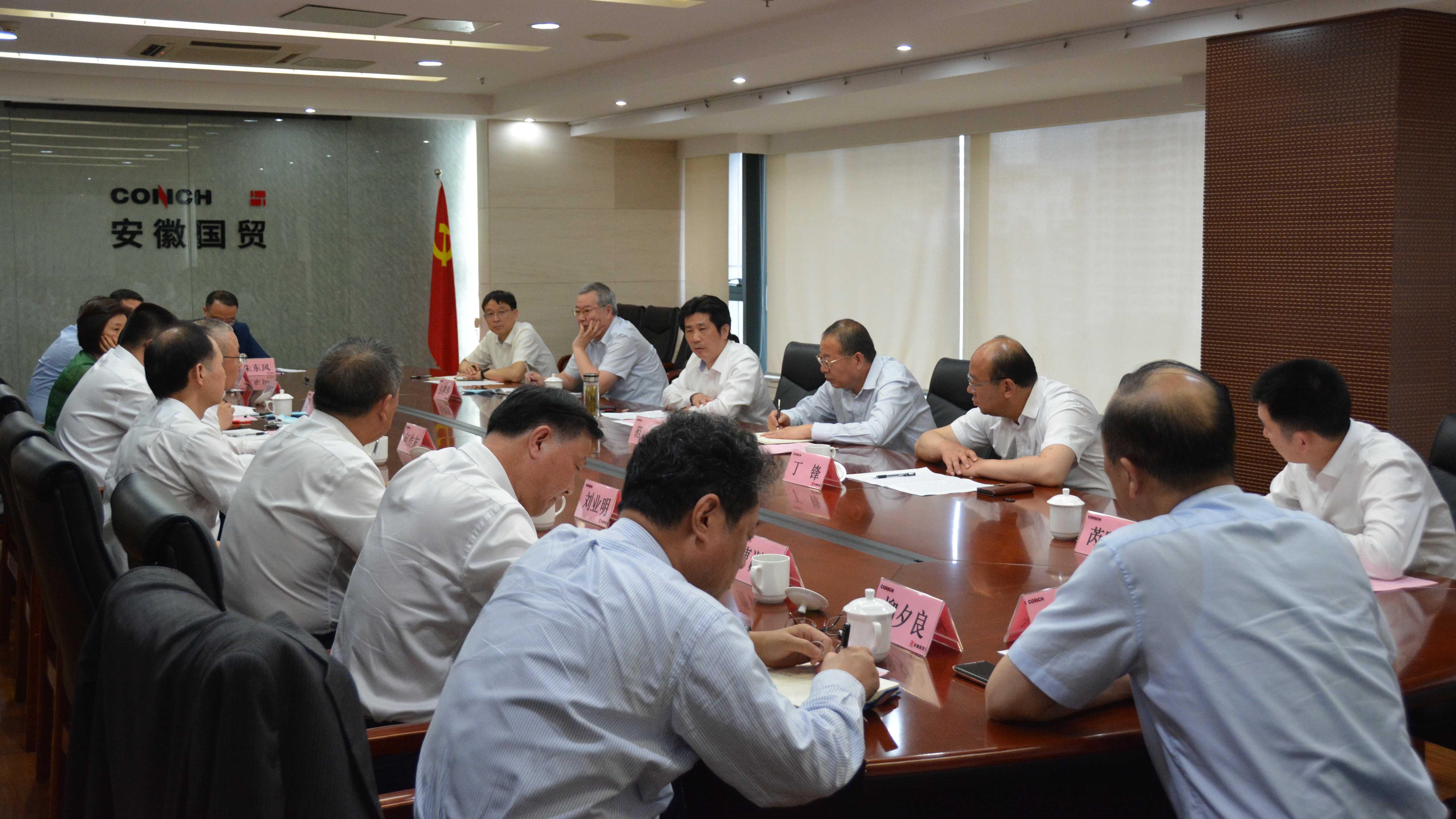 5月27日,集团党委书记、董事长杨军到安徽国贸调研指导工作。集团公司党委委员、总经济师丁锋等陪同调研。