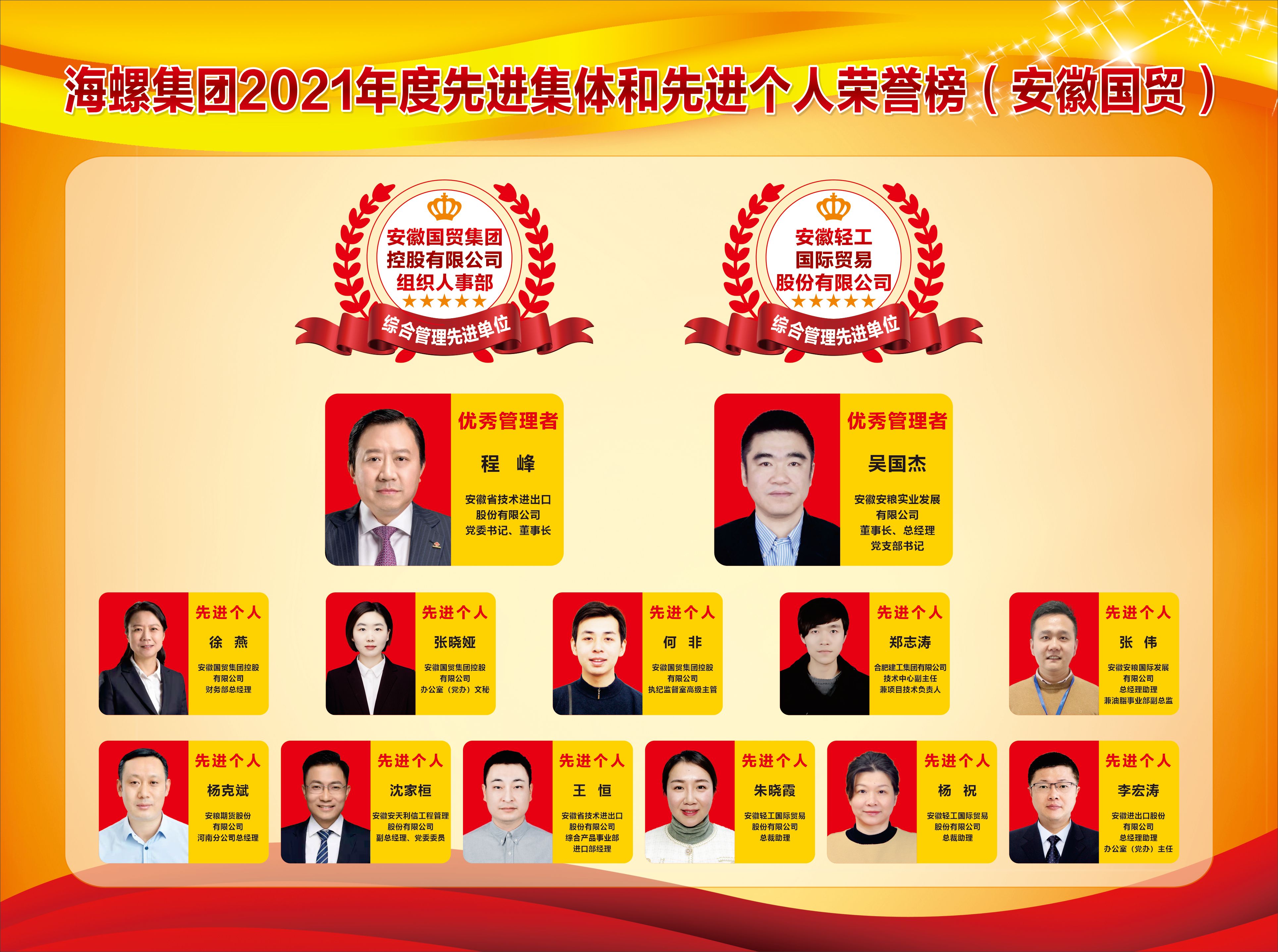 海螺集团2021年度先进集体和先进个人荣誉榜(安徽国贸)