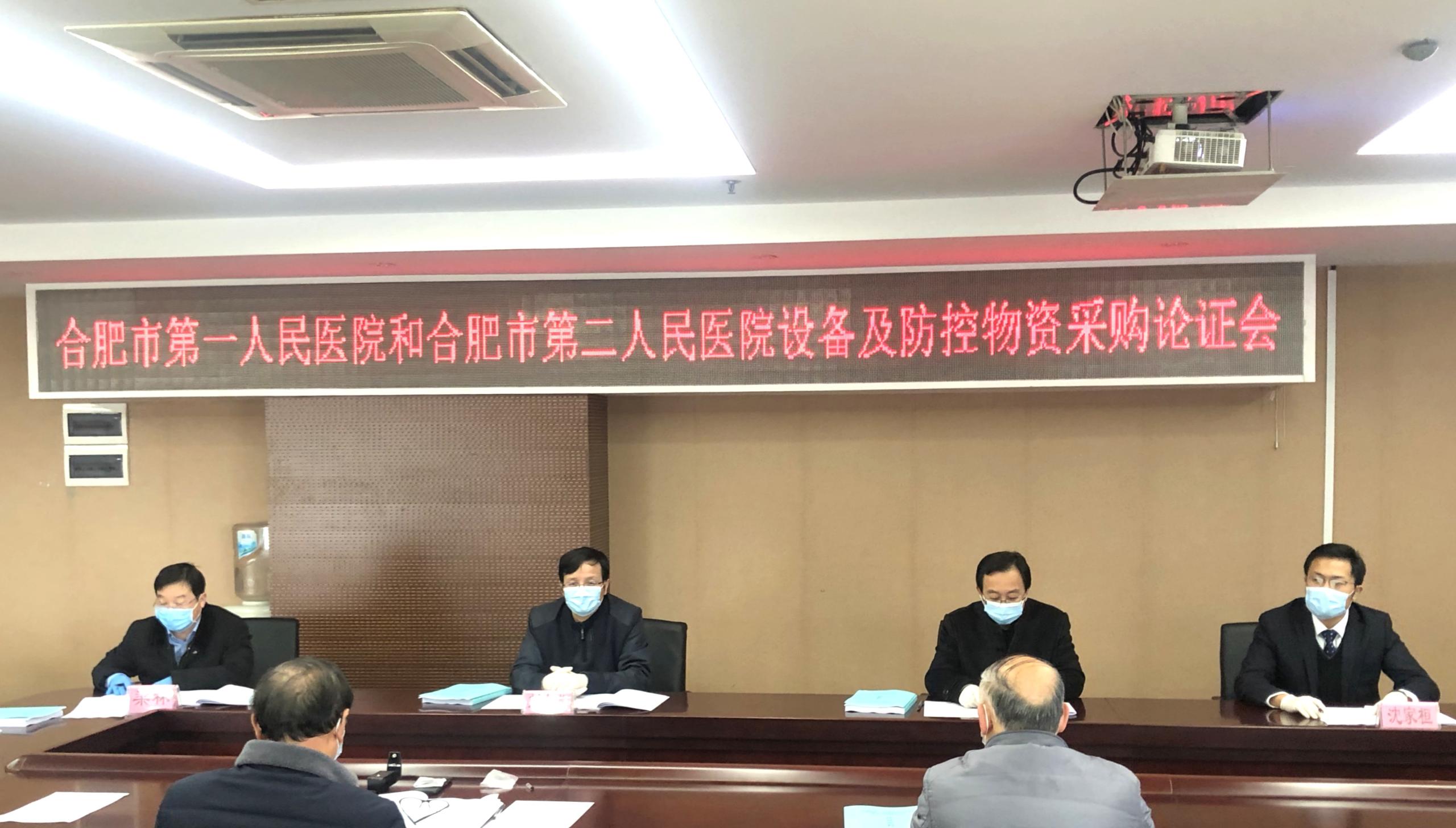2020年2月12日上午,合肥市政务新区国贸大厦6楼会议室里不时响起一阵阵简短而有力的交谈声,空气中弥漫着消毒水的味道,参会者人人佩戴口罩且拉开座位距离。一场疫情期间紧急举行的医疗设备及防控物资采购论证会正在这里举行。