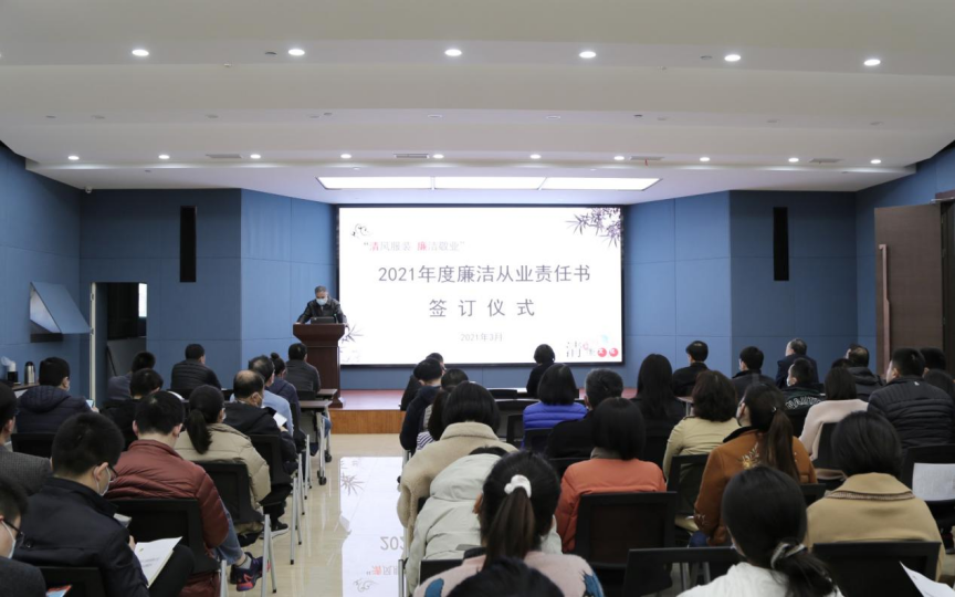 签订仪式上,服装公司班子成员、各部室负责人、关键岗位代表及工会、团委、二级机构负责人等,现场签订了《2021年度廉洁从业承诺书》。此外,为强化各部室负责人的主体责任,公司党委还与27名部室负责人签订了《2021年度廉洁从业责任书》。