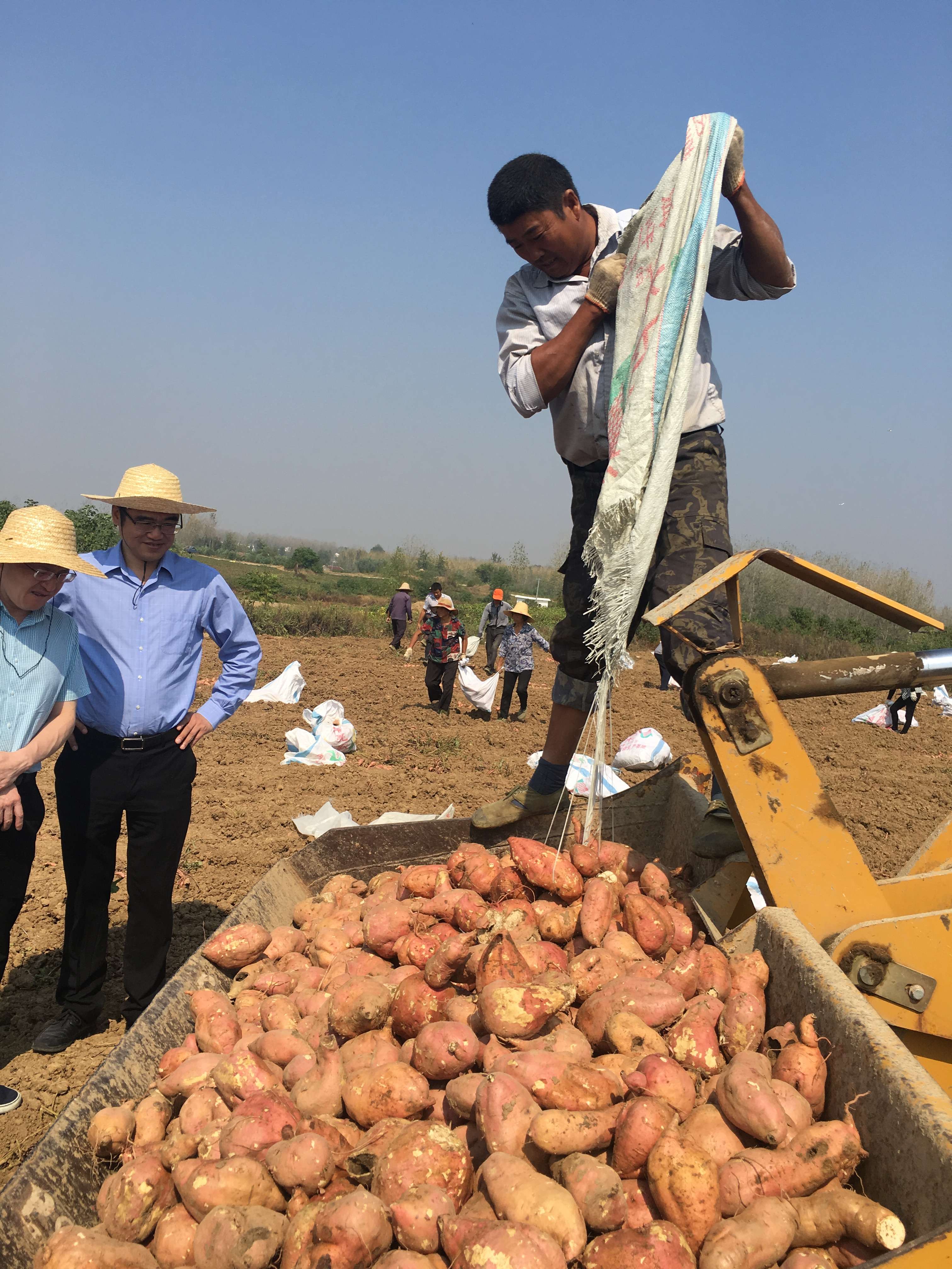 《脱贫红薯丰收了》-国贸本部-李明辉,2019年9月29日,摄于霍邱县冯瓴乡花墙村。该村过去是省级贫困村,2016年安徽国贸及安粮集团联手对该村实施产业扶贫,引进适合出口的红薯品种种植,优先吸收贫困户劳动力前来务工。现该村顺利脱贫,红薯出口到日本、韩国等国家,并加工成多种食品,进入千家万户。