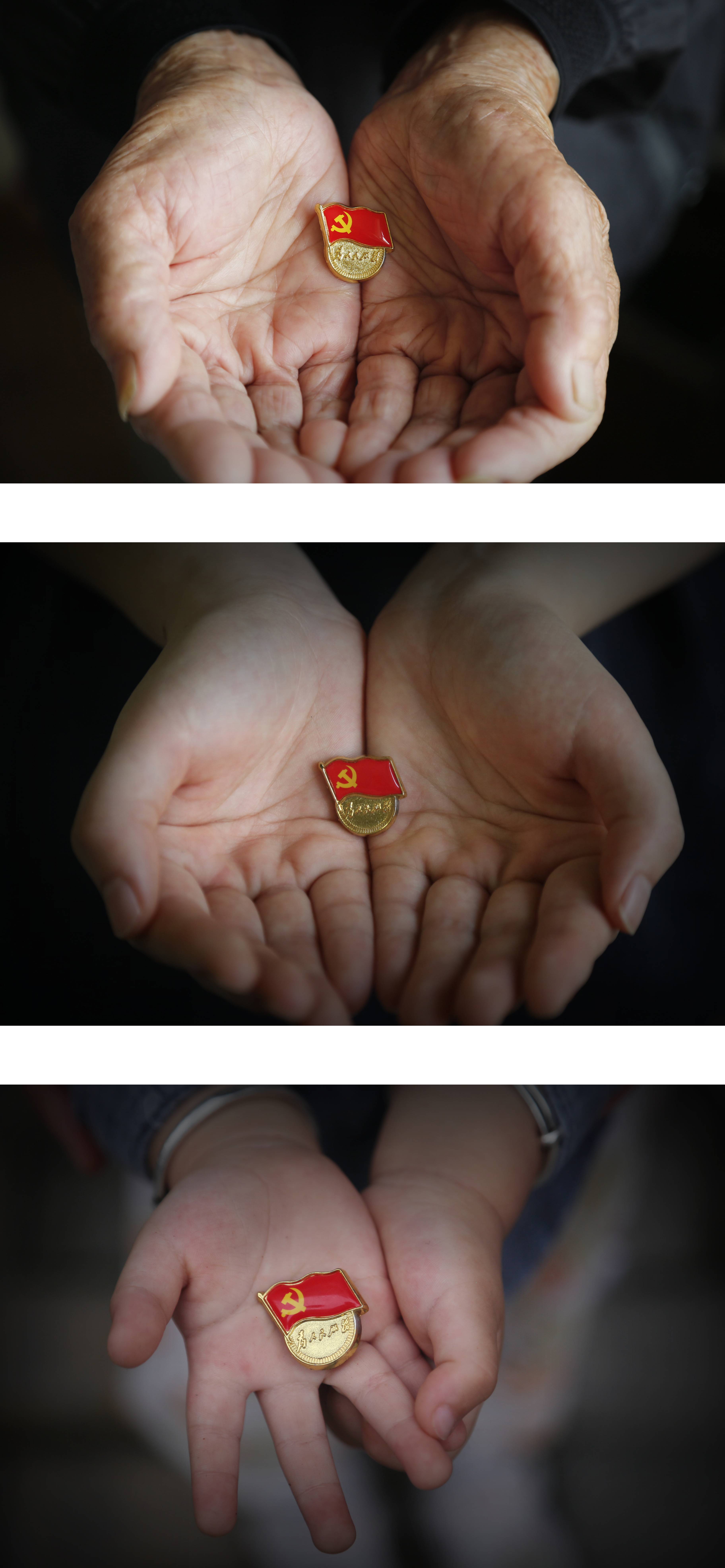 《传承》-安粮期货-郝晓巍,2021年6月摄于合肥。作品以“传承”为立意,通过老青幼三代人手捧党徽的画面,表达了长辈对晚辈的期望与寄语,继承光荣传统,弘扬革命精神,传承红色基因。