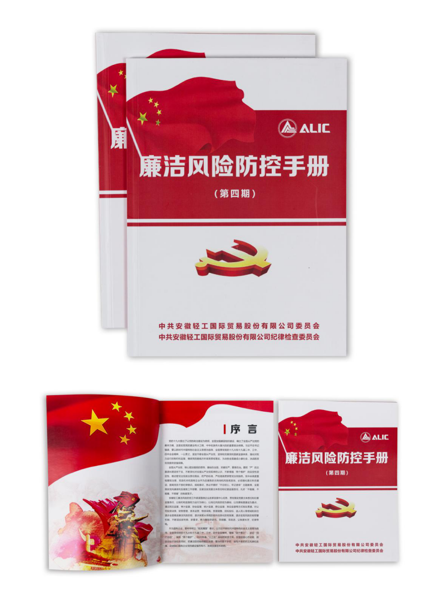 自2012年以来,轻工国际纪委着手编撰具有轻工特色的《廉洁风险防控手册》,目前已经更新到第四版。最新的《廉洁风险防控手册》收编了习近平总书记重要讲话、中央纪委关于廉政风险防控的指导意见、省委、海螺集团、国贸集团领导和公司党委书记重要讲话,以及重要党纪党规和公司廉洁文化活动纪实,同时刊载了公司党委和纪委组织机构名单、党员干部廉洁自律警言警语和公司廉洁文化活动剪影等,旨在教育干部员工了解党的工作方向、守法敬纪、远离禁区,拒腐抗腐、摒弃遗风陋俗,激发干事创业热情。